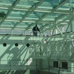 Nacelles téléscopiques sur ponts mobiles pour le nettoyage de toits vitrés