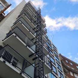 Echelle de secours fixe de 3 étages avec un balcon d'accès pour un appartement situé dans les combles