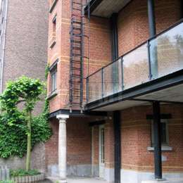 Balcon d'évacuation sur mesure et échelle à base escamotable sur une ancienne façade afin d'évacuer par la fenêtre d'une maison