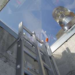 Rookluik ladder met verticale rail en telescopische handgreep