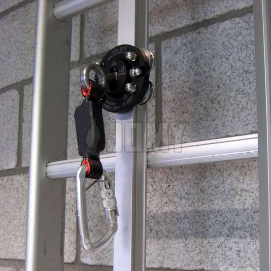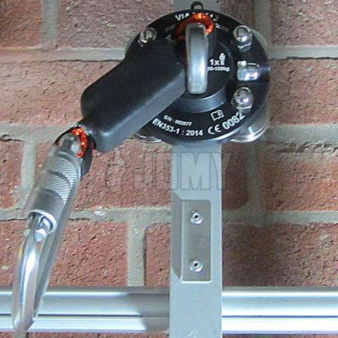 Gevel-onderhoudssysteem met levenslijnrail en meelopende valbeveiliger